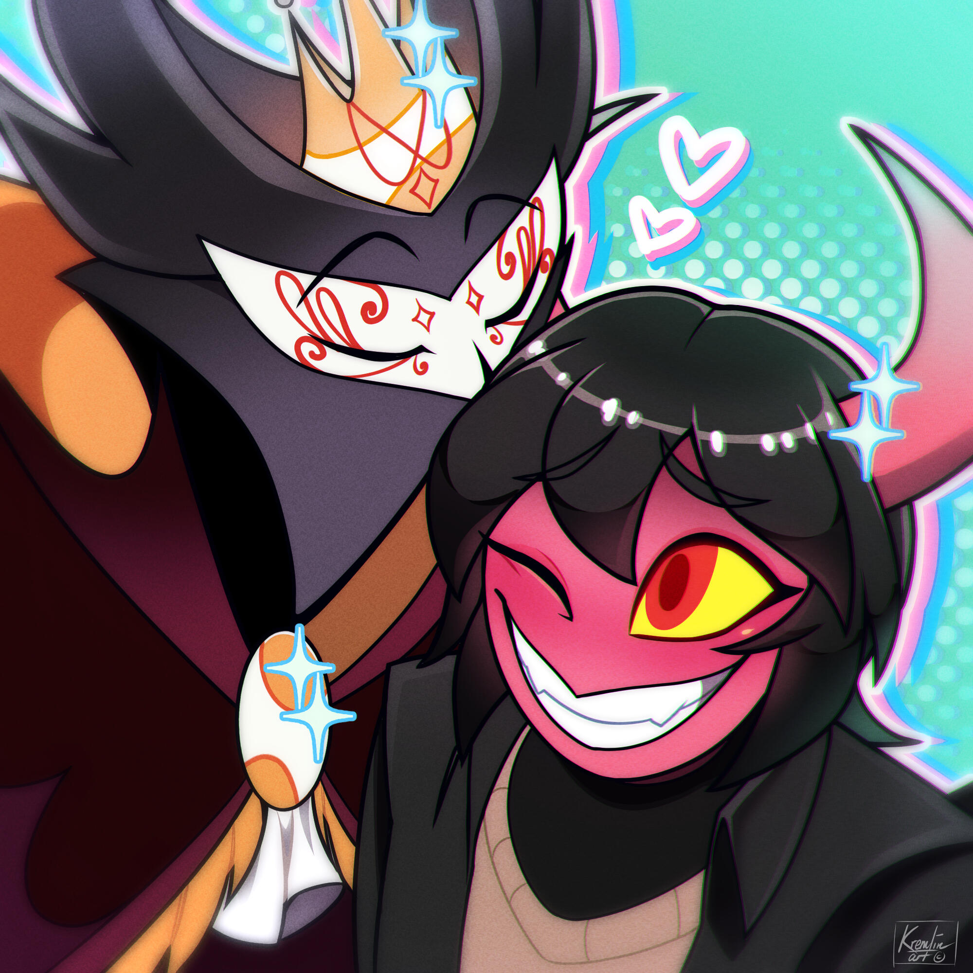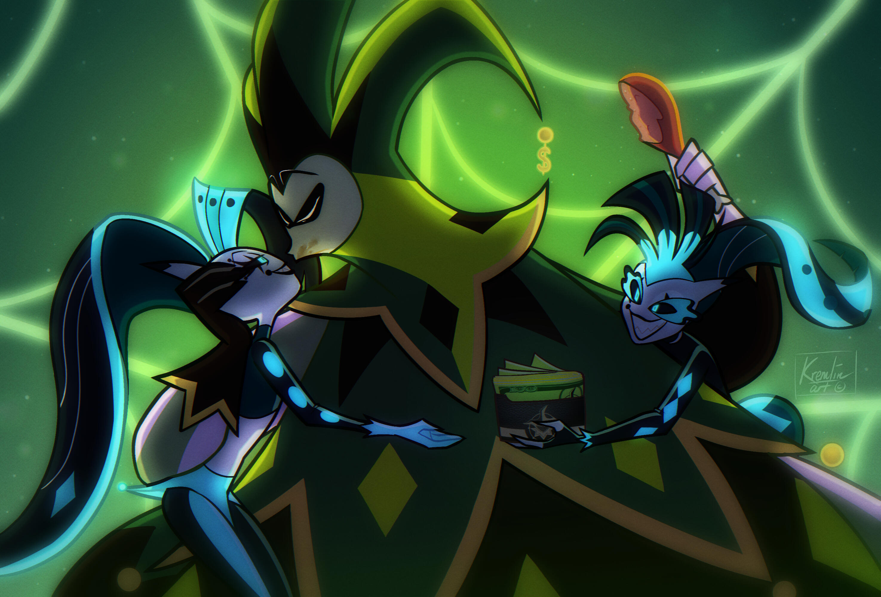 Helluva Boss - MAMMON’S MAGNIFICENT MUSICAL MID-SEASON SPECIAL (ft Fizzarolli), cel-shading, 8.25 x 10.25 in